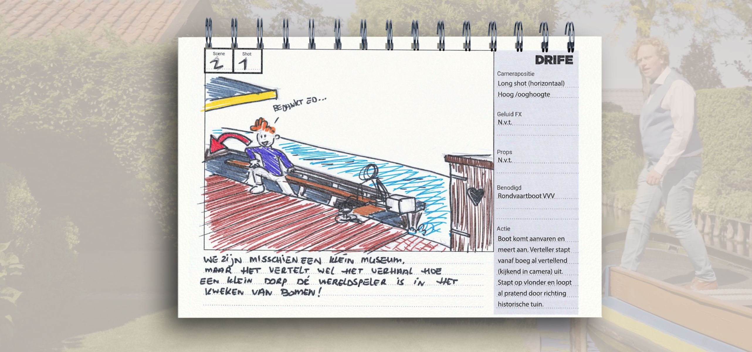 Voor we gingen filmen, maakten we een storyboard. Zie het als een stripverhaal van de complete film. Per scène was duidelijk wat er in beeld moest gebeuren. De houding van de verteller. Geluidseffecten. Animaties. Props. Camerabewegingen. Timing. Alles lag vast.